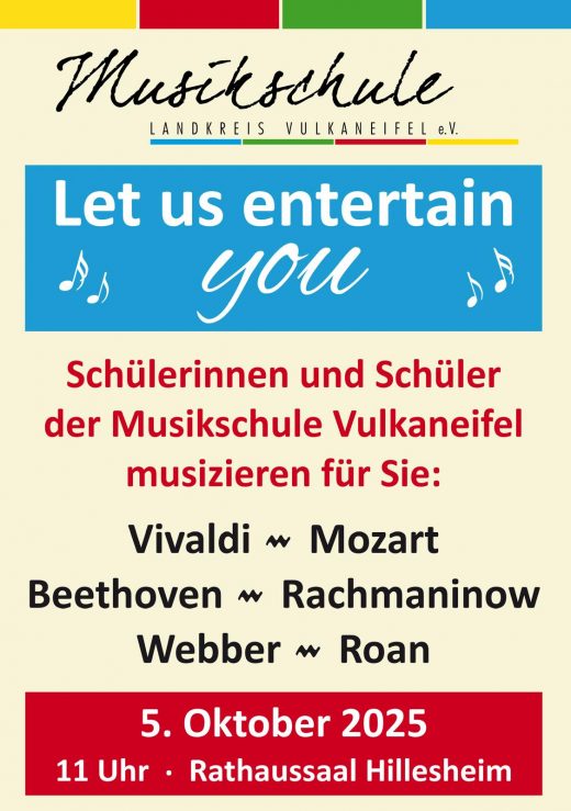 Wir freuen uns, dass wir beim diesjährigen Konzert des Kreisorchesters, das Vorprogramm gestalten dürfen. Mit Saxophon-, Violin-, und Klavierbeiträgen präsentiert sich die Musikschule in gewohnt vielfältiger Weise. Hier der Link zu den Tickets: https://www.kmv-vulkaneifel.de/index.php/tickets/articles/tickets.html